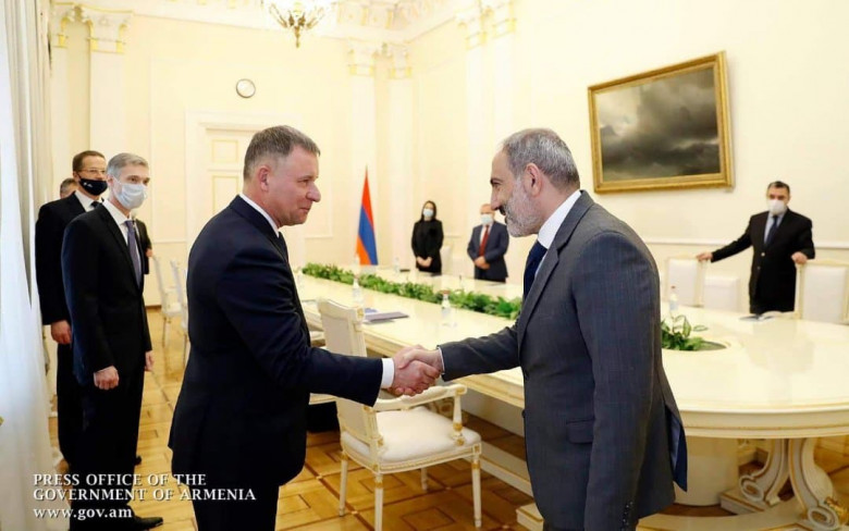 Փաշինյանը բարձր է գնահատել ՌԴ ԱԻ նախարարության գործունեությունը՝ Լեռնային Ղարաբաղում բնականոն կյանքի վերականգնման, քաղաքացիներին ցուցաբերվող հումանիտար օժանդակության գործում եւ շնորհակալություն հայտնել հայկական կողմի հետ արդյունավետ համագործակցության համար: Նիկոլ Փաշինյանը նշել է, որ ՀՀ կառավարությունը կարեւորում է Ռուսաստանի հետ ռազմավարական համագործակցության շարունակական զարգացումը՝ ընդգծելով ՌԴ առանցքային դերը տարածաշրջանում խաղաղության եւ կայանության ամրապնդման գործում: «Մենք շահագրգռված ենք ՌԴ-ի հետ համագործակցության հետագա զարգացմամբ բոլոր, այդ թվում՝ անվտանգության, տնտեսության եւ հումանիտար ոլորտներում»,- ասել է վարչապետը՝ անհրաժեշտ համարելով տարբեր բնագավառներում համատեղ նոր ծրագրերի մշակումն ու իրականացումը: