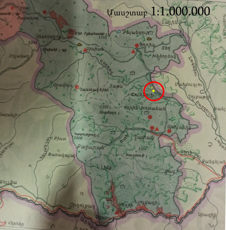 Քարտեզում հստակ երևում է, որ Գորիս-Կապան ճանապարհից մինչև սահման առնվազն 1 կմ հեռավորություն կա։ Քարտեզի մասշտաբը 1։1․000․000 է։