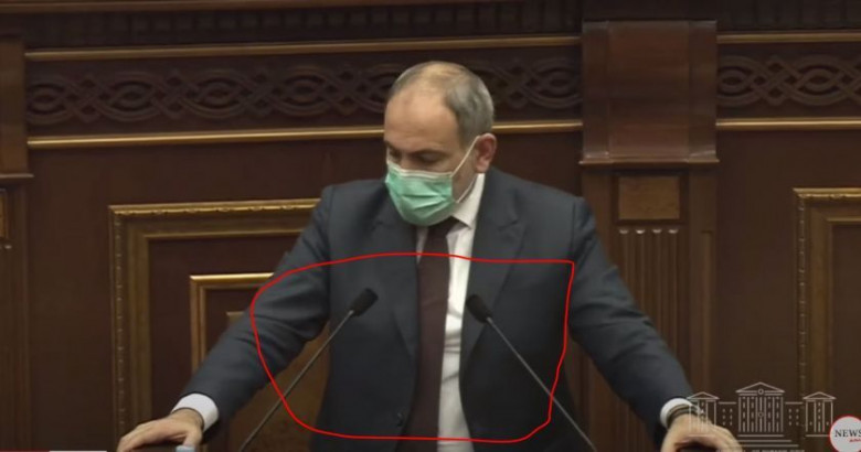 Տեսագրությունները դիտելիս գրեթե ակնհայտ է, որ վարչապետի պաշտոնը զբաղեցնող հիշյալ անձը շապիկի տակ ինչ-որ բան է հագել: Այդ մասին են վկայում նկատելիորեն նեղ շապիկն ու բաճկոնը: