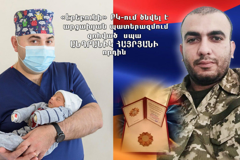 Հասարակություն«Էրեբունի» ԲԿ-ում ծնվել է արցախյան պատերազմի ընթացքում զոհված կապիտան Անդրանիկ Հայրյանի որդին: Սպան զոհվել էր Շուշիի մարտերի ընթացքում՝ դրսևորելով անձնուրաց քաջություն, բարձր պահելով սպայի պատիվը: