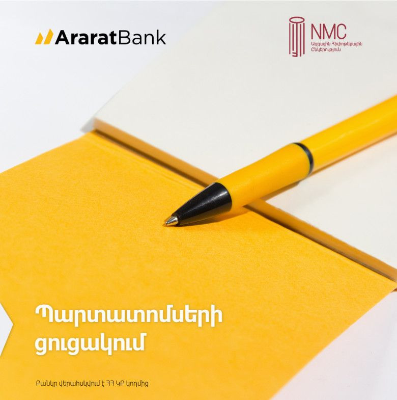 ՀասարակությունԻնչպես նշել են բանկում, «Ազգային հիփոթեքային ընկերություն» ՎՎԿ ՓԲԸ-ի քսանմեկերորդ թողարկման անվանական արժեկտրոնային պարտատոմսերը ցուցակվելու են սույն թվականի մարտի 24-ին Հայաստանի ֆոնդային բորսայի Abond հարթակում։ 2009թ․-ի հունվարից ֆոնդային բորսայի անդամ հանդիսացող ԱՐԱՐԱՏԲԱՆԿ ԲԲ ընկերությունը հանդես կգա նշված պարտատոմսերի շուկա ստեղծողի կարգավիճակում։