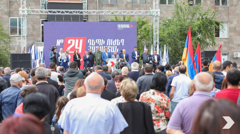 : Հետո խոսվել է խորհրդարան անցնելու հնարավորությունների մասին: Դրա հնարավորությունը, ըստ Խաչատրյանի, ունեն երեք-չորս քաղաքական ուժեր: Մնացածներն, այսպես կոչված, «պրոքսի» են, և պետք չէ նրանց հաշվարկի մեջ առնել: «Նիկոլ Փաշինյանի «Քաղաքացիական պայմանագիր» կուսակցությունը, ձայների ազնիվ հաշվարկով, կարող է հավաքել ձայների առավելագույնը 15 տոկոսն իր «աղանդավորների» հաշվին, ովքեր մանթրայի նման միայն կրկնում են, որ «նախկինները» վերադառնում են, և շրջապատում ոչինչ չեն տեսնում: Ռոբերտ Քոչարյանի գլխավորած «Հայաստան» դաշինքը միանգամայն ընդունակ է վերցնել ձայների 35-40 տոկոսը: Երկիրը փափագում է կոշտ առաջնորդի: