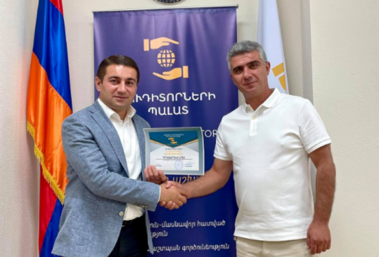 ՏնտեսությունԱուդիտորների պալատի նոր անդամ է դարձել Պրոֆորում ՍՊԸ-ն։ Պալատի նախագահ Նաիրի Սարգսյանն անդամակցության վկայական հանձնեց ընկերության տնօրեն Վրեժ Մխիթարյանին։
