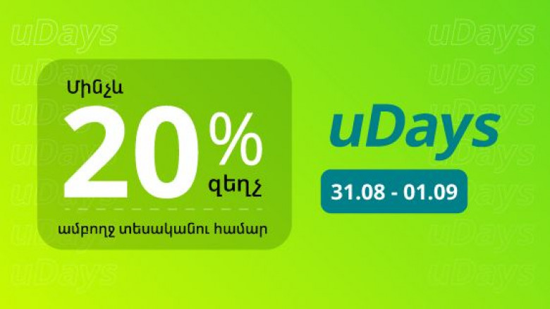 ՀասարակությունՄիայն երկու օր՝ օգոստոսի 31-ին և սեպտեմբերի 1-ին, «uDays» հատուկ առաջարկի շրջանակներում Ucom-ի վաճառքի և սպասարկման կենտրոններում, ինչպես նաև Ucom-ի առցանց խանութում յուրաքանչյուրը կարող է ստանալ մինչև 20% զեղչ սմարթֆոնների և 15%՝ աքսեսուարների ողջ տեսականին գնելու դեպքում: