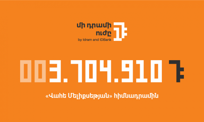 «Август был довольно активным с точки зрения платежей̆ через приложение Idram&IDBank, и это нас только радует, так как благодаря платежам и доброй̆ воле наших пользователей̆ мы смогли выделить около 3,7 млн драмов в этот недавно созданный̆, но многообещающий̆ фонд, занимающийся не только образовательными, но и чисто благотворительными проектами. Мы надеемся, что благодаря программе «Сила одного драма» некоторые мечты и цели Ваге сбудутся», - отметил Гор Амирян, руководитель отдела маркетинга компании Idram.