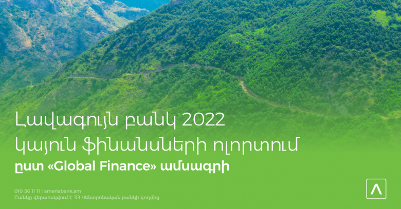 ՏնտեսությունGlobal Finance ամսագիրը հայտարարել է կայուն ֆինանսավորման ոլորտում արդեն երկրորդ անգամ անցկացվող մրցանակաբաշխության հաղթողներին: Ամերիաբանկը ճանաչվել է Հայաստանում «Կայուն ֆինանսավորման գծով 2022 թ-ի լավագույն բանկ»` դառնալով տարածաշրջանի առաջին բանկը, որն արժանանում է այսմրցանակին: