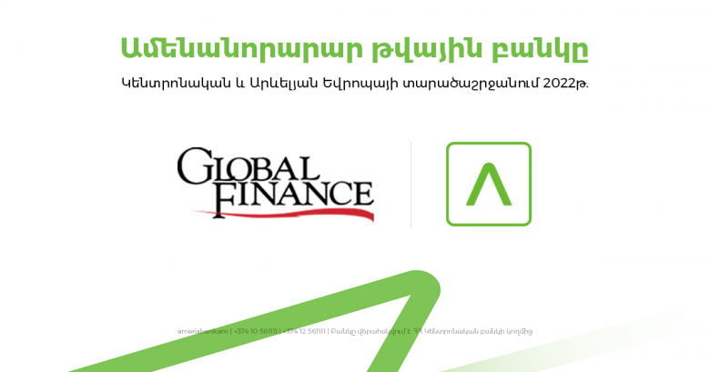 Ամերիաբանկն արժանացել է «Global Finance» ամսագրի «Կենտրոնական և Արևելյան Եվրոպայի տարածաշրջանի ամենանորարար թվային բանկ 2022» մրցանակին
