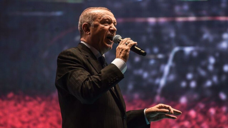 Մի մարդու մեջ գոյակցում են խաղաղության և համագործակցության մասին քաղցր ճառերը, միևնույն ժամանակ անթաքույց թշնամանքը, ռազմատենչ հռետորաբանությունը և բացահայտ ռազմական գործողությունները։ Նա, ատելով Արևմուտքը, ավելի քան 20 տարի փորձում է Թուրքիային մտցնել Եվրամիություն։ Նա, ատելով Իսրայելը և նրան մեղադրելով բոլոր մեղքերի մեջ, աջակցում է ՀԱՄԱՍ-ի ահաբեկիչներին, բայց ակտիվորեն հանդես է գալիս Թուրքիայի և Իսրայելի միջև բարեկամական երկկողմ հարաբերությունների զարգացման օգտին։