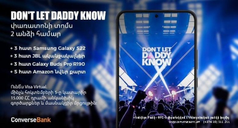 Մրցույթի հաղթողները կորոշվեն պատահականության սկզբունքով Բանկի ֆեյսբուքյան էջում ուղիղ հեռարձակման միջոցով: Մասնակիցները խաղարկությամբ հնարավորություն կունենան ստանալու 3 հատ Samsung Galaxy S22, 3 հատ JBL ականջակալ, 3 հատ Galaxy Buds Pro R190 և 5 հատ Amazon նվեր քարտ: Իսկ ամենահաջողակը կմասնակցի հաջորդ գարնանը Ամստերդամում կայանալիք Don't Let Daddy Know փառատոնին (փաթեթը նախատեսված է երկու անձի համար):