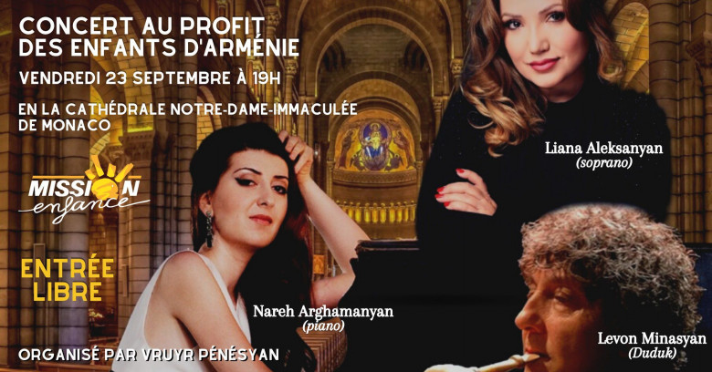 Մոնակոյի Մայր «Notre Dame» տաճարում տեղի կունենա Հայաստանի Անկախության տոնին նվիրված բարեգործական համերգ՝ ի նպաստ MISSION ENFANCE հիմնադրամի՝ աջակցելու անապահով հայ երեխաներին: Mission Enfance Monaco-ի պատվո նախագահն է Մոնակոյի իշխան Ալբեր II-ը: