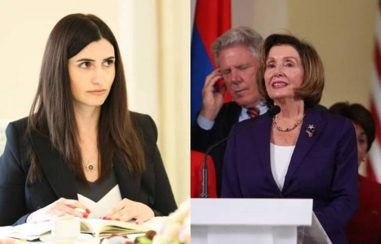 -Ես այս պահին իսկապես թարգմանչուհու կողքին եմ, քանի որ թարգմանչուհին իսկապես պրոֆեսիոնալ է, դեսպանի անձնական թարգմանիչն է և միայն մեկ դեսպանի հետ չէ, որ աշխատել է, այսինքն՝ մի քանի դեսպանի հետ նախկինում էլի Տիգրանուհուն տեսել եմ։ Իրականում, ամերիկյան կողմն է ցանկացել, որ իրենք տերամադրեին թարգմանիչ, և այն, ինչ խոսելու էր ամերիկյան կողմը, թարգմանվեր դեսպանատան թարգմանչի կողմից։ Այսինքն՝ նախապատրաստական աշխատանքների ընթացքում իրենք ցանկացել են, որ Նենսի Փելոսիի այցի ամբողջ ընթացքում թարգմանությունն իրականացնի իրենց նշած թարգմանիչը, ինչին, բնականաբար, հայկական կողմը դրական պատասխան է տվել։