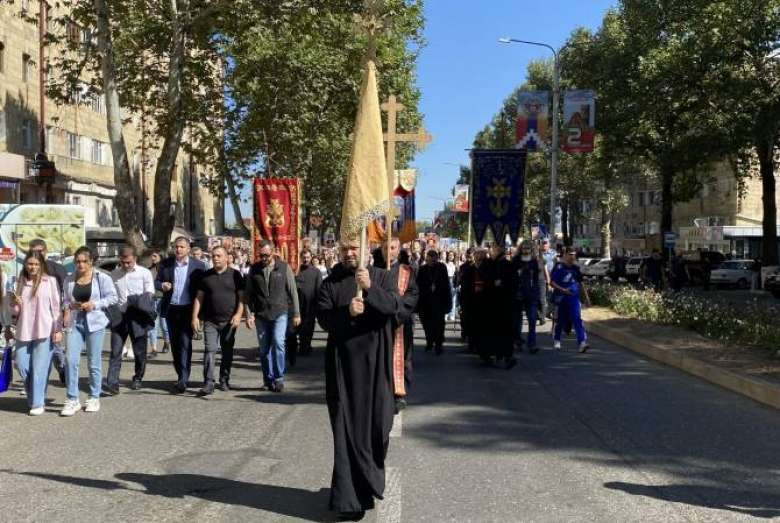 Խաչերթի մեկնարկից առաջ եկեղեցու բակում հավաքվածներին դիմեց Հայ Առաքելական եկեղեցու Արցախի թեմի փոխառաջնորդ Տեր Սահակ վարդապետ Շաքարյանը: «Երկու տարի անց մենք կրկին հավաքվել ենք՝ միասնաբար ոգեկոչելու 44-օրյա պատերազմում նահատակված մեր սրբազան եղբայրների ու քույրերի հիշատակը: Այսօր նաև ուխտի և ուխտի նորոգման օր է: Սուրբ գիրքն ասում է, որ Աստված ապաշխարհանքից հետո է միայն ներում: Այսօր չպետք է շտապենք մեր քայլերի մեջ, պետք է լինենք հավասարակշռված ու փորձենք ազգային մեր ներուժը ՝ խաչի օգնությամբ, հավատքով խարսխված, ի ցույց դնել աստվածատուր ազգային շնորհը մեր երկիրը կրկին վերազարթնեցնելու և պայծառացնելու համար: Այսօր դեպի մեր հոգին նայելու պահ է և վերածննդի օր պիտի լինի յուրաքանչյուրիս համար»,- ասաց Տեր Սահակ վարդապետ Շաքարյանը: