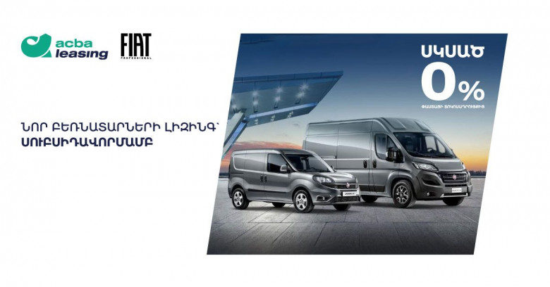 ՀասարակությունՏնտեսությունների արտադրական կարողությունների արդիականացման նպատակով Ակբա Լիզինգն առաջարկում է լիզինգով ձեռք բերել Fiat բեռնատարներ «Fine Cars of Armenia» ընկերությունից՝ սկսած 0% փաստացի տոկոսադրույքից։