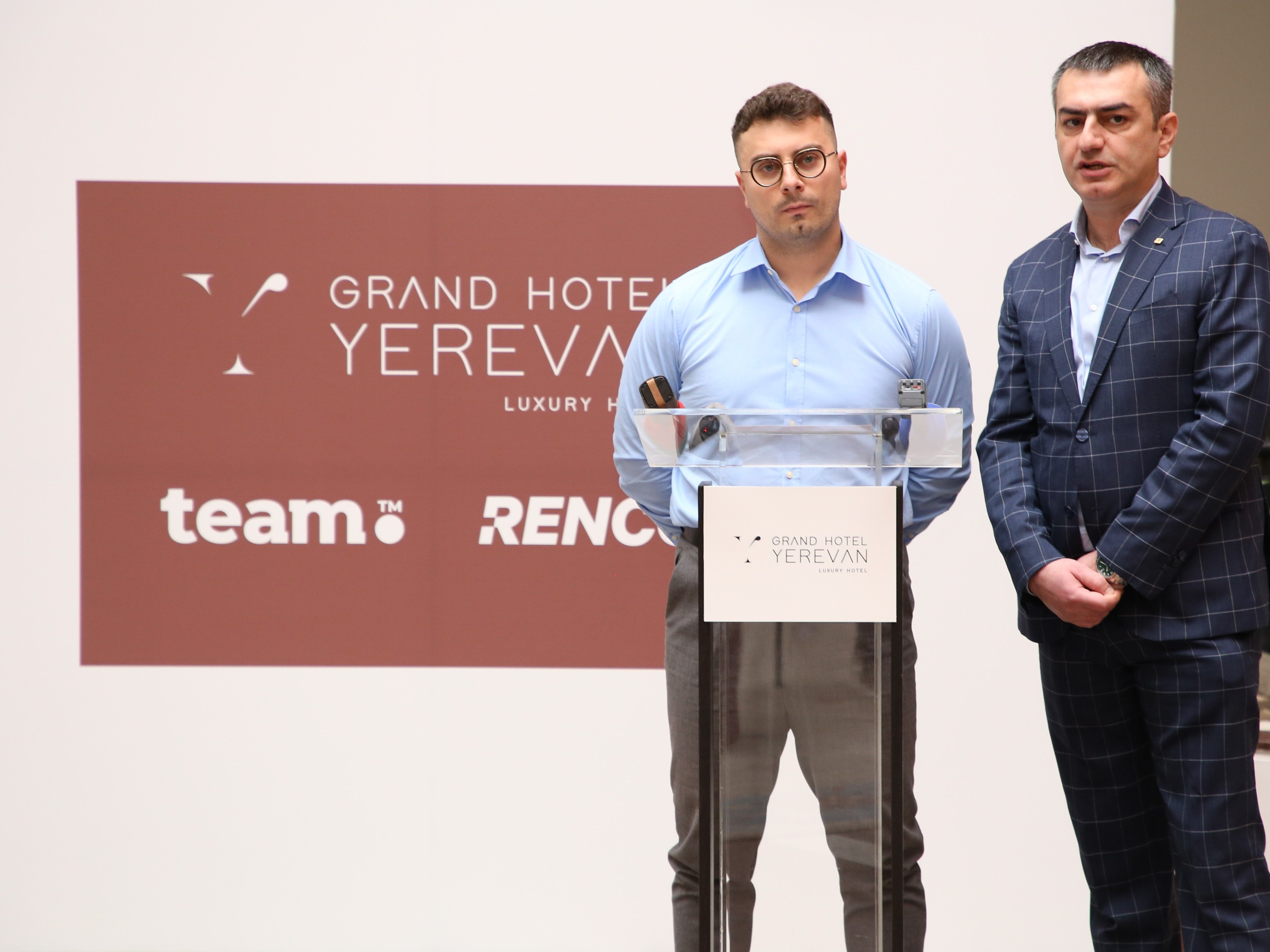 Տնտեսություն6 մարտի, 2023 թ․, Երևան «Գրանդ Հոթել Երևան» հյուրանոցի նոր սեփականատեր է դարձել Թիմ ընկերությունների խումբը․ այս մասին հայտնել են իտալական Ռենկո ընկերության հայաստանյան մասնաճյուղի տնօրեն Անդրեա Դելլասանտան և Թիմ ընկերությունների խմբի տնօրենների խորհրդի նախագահ Ալեքսանդր Եսայանն այսօր կայացած մամուլի ասուլիսին։