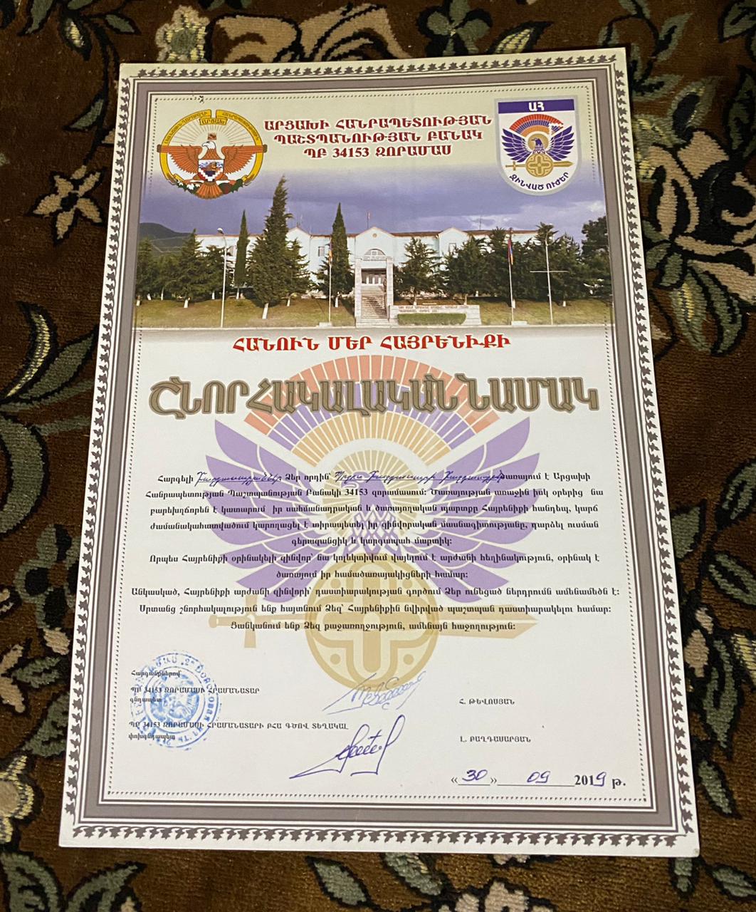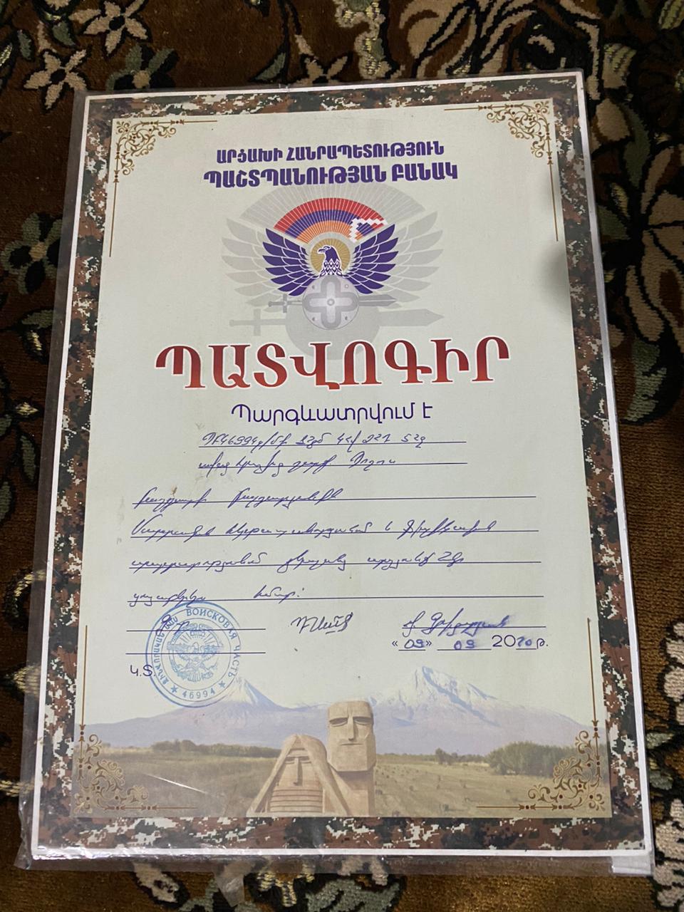 «Նոր տարվա «նվեր» բերեցին ու տվեցին ինձ»: ԴՆԹ-ի անհրաժեշտություն չի եղել, մարմինը ճանաչելի էր, սակայն մայրիկը չի կարողացել որդուն հրաժեշտ տալ, գրկել ու համբուրել, տեսնել մի վերջին անգամ: Հիմա ամեն օր գնում է գյուղի գերեզմանատուն՝ որդուն տեսության, ասում է՝ «եթե մի օր չգնամ, ուրեմն մեռած եմ: Հիմա ապրում եմ իր նկարներով, իր տեսանյութերով, իրենով եմ ապրում: Ցավս պահում եմ իմ մեջ, երեխեքիս ցույց չեմ տալիս, իրենք ինչո՞վ են մեղավոր, թե չէ անտանելի ցավոտ է»: