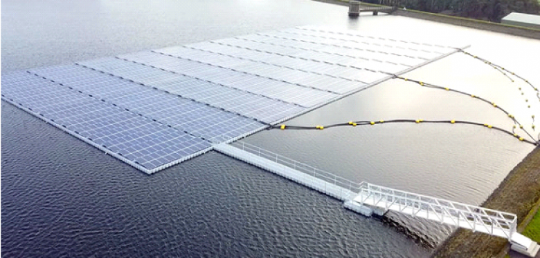 Սա համեմատաբար հեշտ միջոց է տեղում վերականգնվող էներգիա արտադրելու և միաժամանակ ջուրը խնայելու համար: Ջրի վրա կախված արևային մարտկոցները կամ լողացող վոլտայիկները աշխատում են այնպես, ինչպես ցամաքում տեղադրվածները: