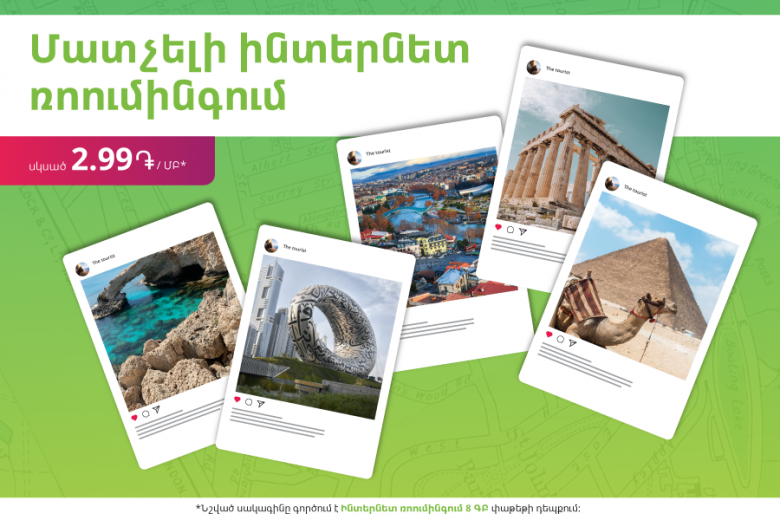 Ի դեպ, որևէ փաթեթ չակտիվացնելու դեպքում մինչև օգոստոսի 31-ը բաժանորդներն ամեն դեպքում կօգտվեն ռոումինգում ինտերնետի ավելի մատչելի՝ 9 դրամ/ՄԲ հատուկ սակագնից՝ նախկին 15 դրամ/ՄԲ-ի փոխարեն, մասնավորապես Բուլղարիա, Հունաստան, Կիպրոս, Իտալիա, Իսպանիա և Մոնտենեգրո ուղևորվելիս և համապատասխան օպերատորներին միանալիս: Նշենք նաև, որ 9 դրամ/ՄԲ սակագինն անժամկետ գործում է Եգիպտոսում Orange, Վրաստանում Geocell/Magticom, ԱՄԷ-ում du և ԱՄՆ-ում T-Mobile օպերատորներին միանալիս:
