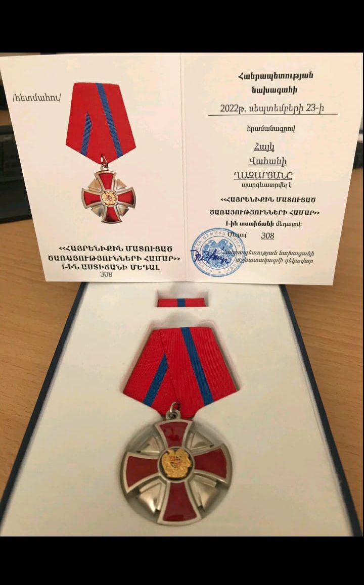 Նախ՝ այն մասին, թե ինչպիսի բնութագիր է տրվել լեյտենանտ Հայկ Ղազարյանին. «2020 թ.-ի սեպտեմբերի 27-ից ակտիվ մասնակցել է Ադրբեջանի կողմից կազմակերպված և իրականացված լայնածավալ պատերազմին: Հրաման է ստացել զբաղեցնել ՀԳՄ պաշտպանության շրջանը, որտեղ հետ են շպրտել հակառակորդի մխրճվող կենդանի ուժը: Սեպտեմբերի 28-ին Հ. Ղազարյանը մարտի դաշտից անձամբ հանել է մեծ թվով վիրավորներ և զոհեր: Մինչև հոկտեմբերի 2-ը գտնվել է տվյալ տեղամասում և ոչնչացրել հակառակորդի դիվերսիոն խմբերին: Հոկտեմբերի 2-ի կեսօրին հրաման է ստացել օգնության հասնել նույն գումարտակի 15-րդ ՀՎ-ի անձնակազմին, որոնք շրջափակման մեջ ընկնելու վտանգի տակ էին «Նյուզ գար» կոչվող տեղամասում: Այդտեղ լեյտենանտ Ղազարյանի շնորհիվ, զինվորների հետ միասին, հետ է շպրտվել հակառակորդի կենդանի ուժը: Նույն օրը ժամը 21:00-ից 22:00 ընկած ժամանակահատվածում հրաման է ստանում օգնել 2 ՀԳՄ-ի ստորաբաժանումներին՝ շրջափակման մեջ չընկնելու նպատակով: Այդ ժամանակ հակառակորդի կողմից սկսվել է լայնածավալ հրետակոծություն, որի հետևանքով Հ. Ղազարյանը ստացել է մահացու բեկորային վիրավորում: