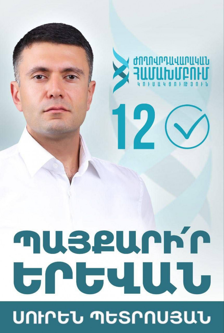 Հիշեցնենք, որ Սուրեն Պետրոսյանը «Ժողովրդավարական համախմբում» կուսակցության նախագահը և քաղաքապետի թեկնածուն է, ով հանրության լայն շրջանակներին հայտնի է, Աղավնոյից։ Սուրեն Պետրոսյանի համարը քվեաթերթիկում 12-ն է, նա հանդես է գալիս «Պայքարիր Երևան» կարգախոսով։