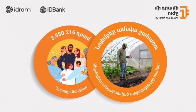 «Մի դրամի ուժի» հաջորդ՝ նոյեմբեր ամսվա ծրագիրը ևս նվիրված է Արցախից բռնի տեղահանված մեր հայրենակիցներին։ Նոյեմբեր ամսվա ընթացքում Իդրամի և Բանկի հարթակներով կատարված բոլոր վճարումներից կուտակված գումարը կփոխանցվի տեղահանված արցախցիների համար Սյունիքում ջերմոցների կառուցմանը։