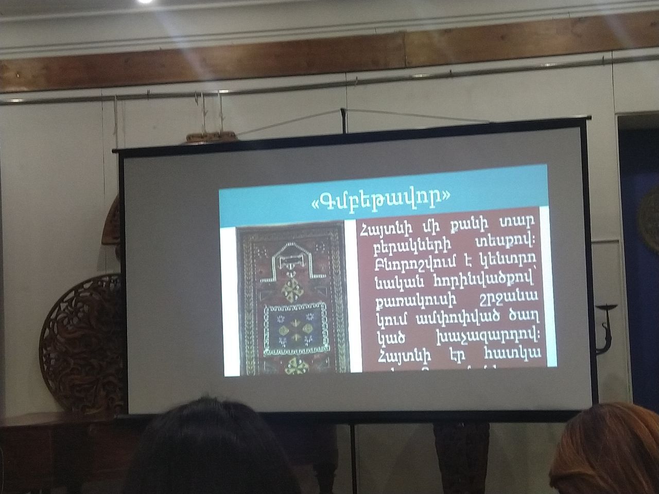 Գորգագետ Աշխունջ Պողոսյանը «Մշակութային արժեքների փորձագիտական կենտրոնի» կազմակերպած «Փորձագիտական դասընթացներ» եռամսյա ծրագրի շրջանակներում հերթական բանախոսությունն ունեցավ Հ. Շարամբեյանի անվան ժողովրդական արհեստների թանգարանում։ Այս անգամ խորագիրը արցախյան գորգագործությունն էր, որի ընթացքում բացահայտվեցին ունկնդիրների համար շատ հետաքրքիր մանրամասներ. Պարզվում է` դեռ հնուց, երբ գորգերը ծիսապաշտամունքային առարկա էին հանդիսանում, այն թանկարժեք էր և ոչ բոլորին հասանելի։ «Գորգագործությամբ զբաղվել են արքունիքին , վանական խոշոր համալիրներին կից արհեստանոցներում, այնուհետեւ խոշոր նախարարական տների արհեստանոցներում, որոնք ունեցել են այդ նյութական և տարածքային հնարավորությունը»,-ասում է Պողոսյանը։ Խոսելով արցախյան գորգագործությունից` անհրաժեշտ է նշել, որ վիշապագորգերը ևս լայն տարածում են ունեցել, որոնց ծագումնաբանությունը կապվում է ոչ միայն Արցախի, այլեւ Սյունիքի գորգագործական կենտրոնների հետ, ինչը վկայում է «Գուհար» վիշապագորգերի վրա գրված արձանագրության ոճը, մասնավորապես «Ով կարդա, մեկ բերան օղորմի թող ասի» բանաձևը, որը բնորոշ էր տվյալ տարածաշրջանի ժողովրդի խոսքին։ Հայ բանահավաք, ազգագրագետ Երվանդ Լալայանը հիշատակում է, որ տնայնագործերը ունեին նախընտրելի եղանակ գորգագործության համար, դրանք ձմեռային ամիսներ էին, երբ բոլորն առաջնային գործում էին սեփական կարիքները հոգալու, հետո նոր պատվերների համար։ Հայերեն արձանագրությամբ գործված վիշապագորգերը վկայում են միջնադարում արցախյան գորգագործության մշակույթի զարգացման մասին,որն անկախ աշխարհաքաղաքական անցուդարձից ու փոփոխություններից փոխանցվել է դարից դար։ Ի վերջո, բանախոսության ավարտին ունկնդիրներին պարզ դարձավ` բացի այն, որ արցախյան գորգագործությունը մեծ ազդեցություն ունի գորգագործության արվեստում, արցախյան գորգագործական մշակույթի ավանդույթները բնակչության տեղափոխումների պատճառով արմատավորվել են նաև Կովկասի հարավ-արևելյան տարածաշրջաններում և հիմք են հանդիսացել գորգագործական նոր կենտրոնների առաջացմանը:
