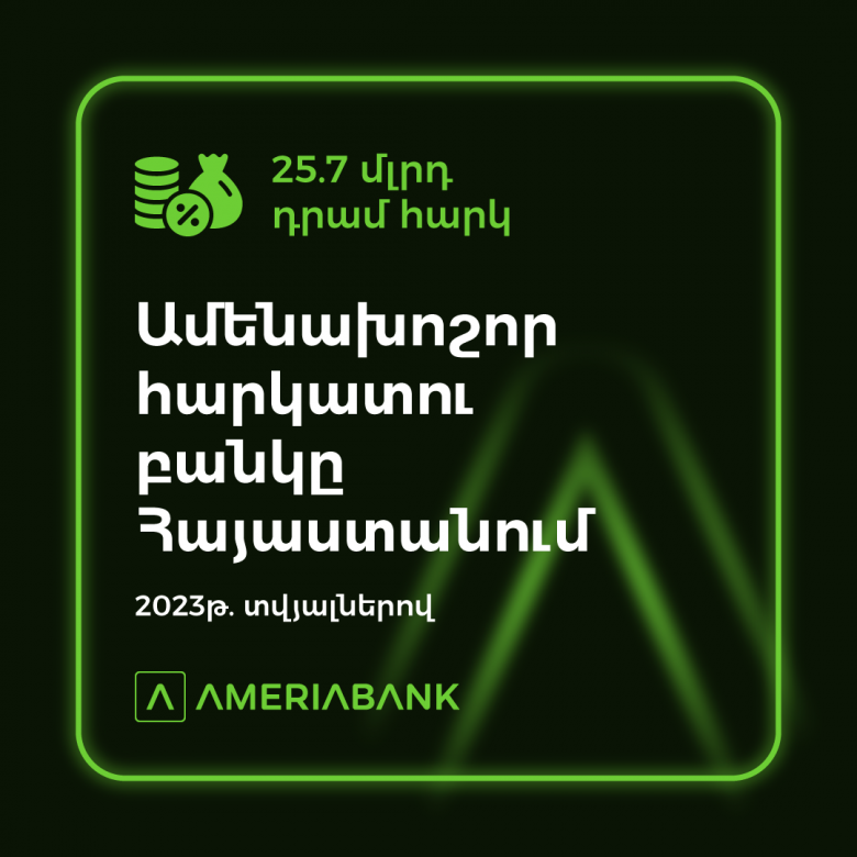 Ամերիաբանկը Հայաստանի ամենախոշոր հարկատու բանկն է