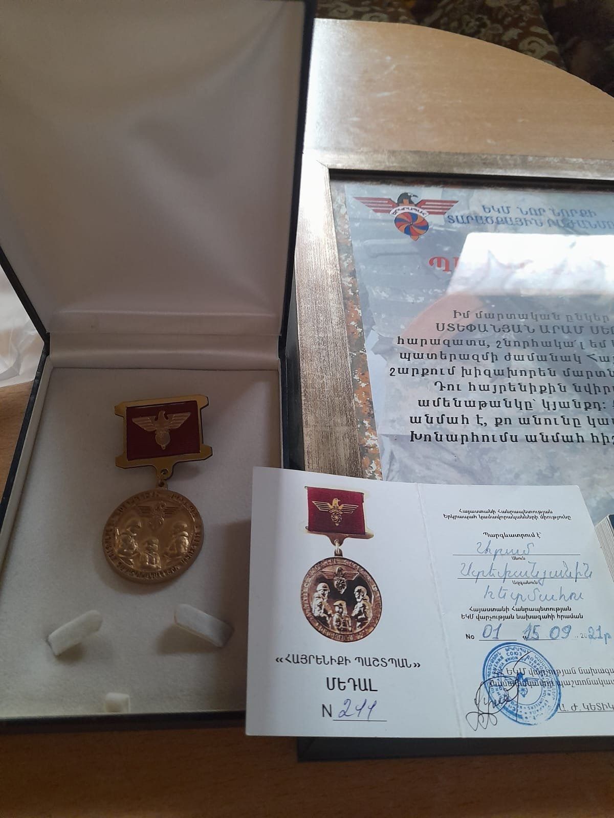 Հ. Գ. - Արամ Ստեփանյանը Արցախի նախագահի հրամանագրով հետմահու պարգևատրվել է «Մարտական ծառայություն» և ԵԿՄ-ի «Հայրենիքի պաշտպան» մեդալներով: Հուղարկավորված է Եռաբլուրում: