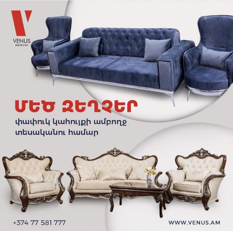 Շտապե՛ք գնումեր կատարել Վենուսից, ձե՛ռք բերեք փափուկ կահույքի ամբողջ տեսականին անհամեմատ ցածր գներով