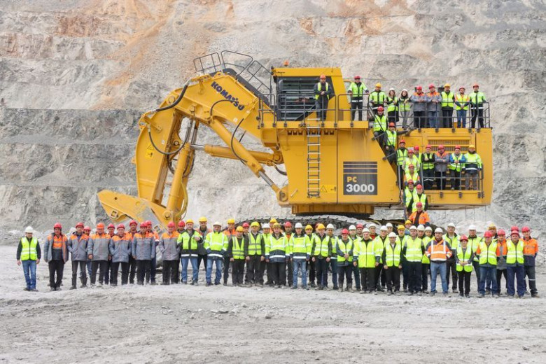 ԲլոգՄեր աշխատակիցները և հսկա Komatsu PC 3000 էքսկավատորը․ համատեղելով ուժերն ու հնարավորությունները: