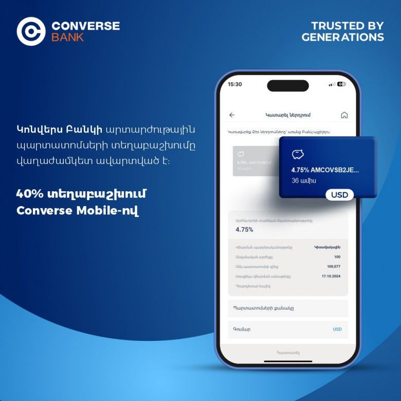Կոնվերս Բանկի պարտատոմսերի տեղաբաշխումն ավարտվել է վաղաժամկետ