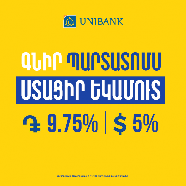 Յունիբանկը թողարկել է 9․75% և 5% եկամտաբերությամբ դրամային և դոլարային պարտատոմսեր