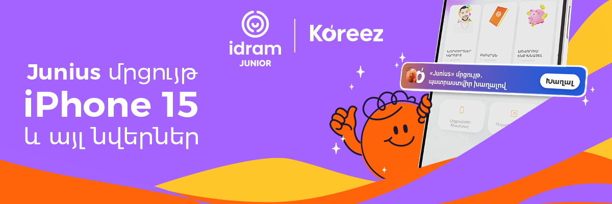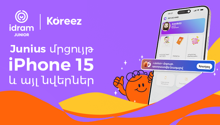 ՀասարակությունIdram Junior հավելվածում արդեն հնարավոր է պատրաստվել Koreez-ի և Junius-ի կազմակերպած համատեղ մրցույթին և շահել iPhone 15։