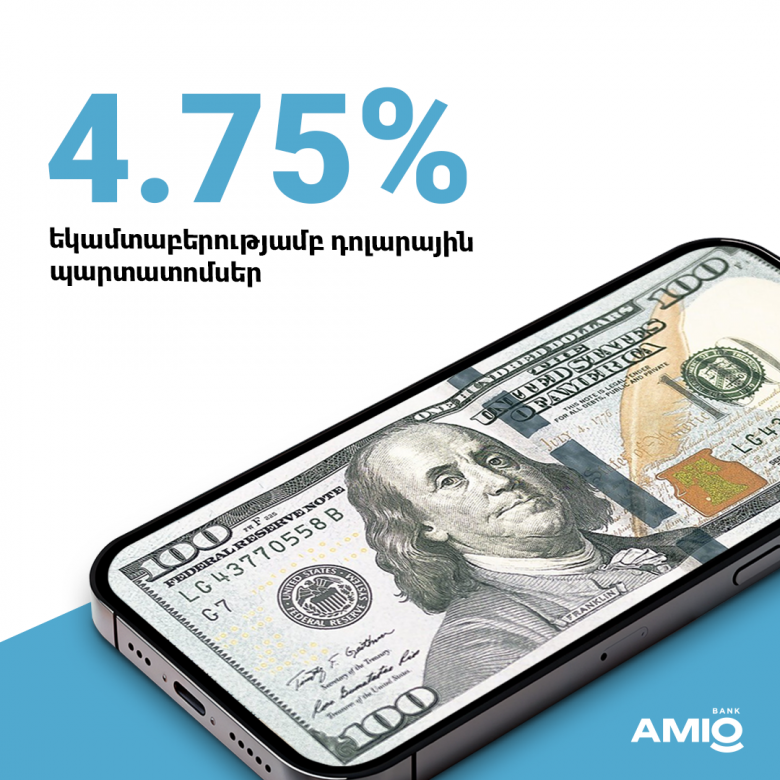 Ավելացրու անձնական ֆինանսական միջոցներդ` ձեռք բերելով Ամիօ բանկի անվանական, չփոխարկվող արժեկտրոնային, ոչ փաստաթղթային դոլարային պարտատոմսերը՝ հետևյալ պայմաններով