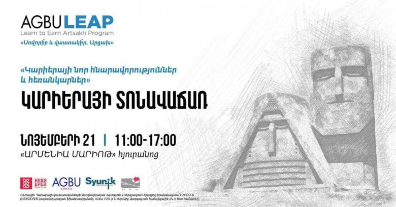 Նոյեմբերի 21-ին «Արմենիա Մարիոթ» հյուրանոցում կանցկացվի «Կարիերայի նոր հնարավորություններ և հեռանկարներ» խորագրով կարիերայի առաջին տոնավաճառը, որը կազմակերպվում է Հայկական բարեգործական ընդհանուր միության (ՀԲԸՄ) «Սովորի՛ր և վաստակի՛ր․ Արցախ» ծրագրի շրջանակում, Երևանի պետական համալսարանի և Եվրասիա միջազգային համալսարանի գործակցությամբ։