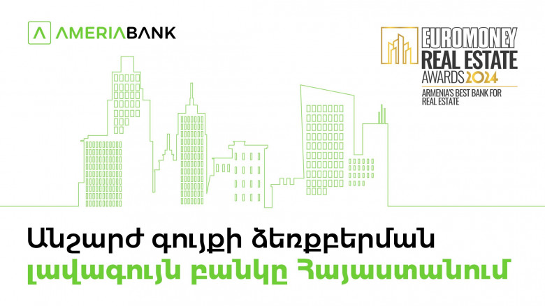 Ամերիաբանկը Euromoney ամսագրի կողմից ճանաչվել է Հայաստանի լավագույն բանկն Անշարժ գույքի ձեռքբերման ոլորտում