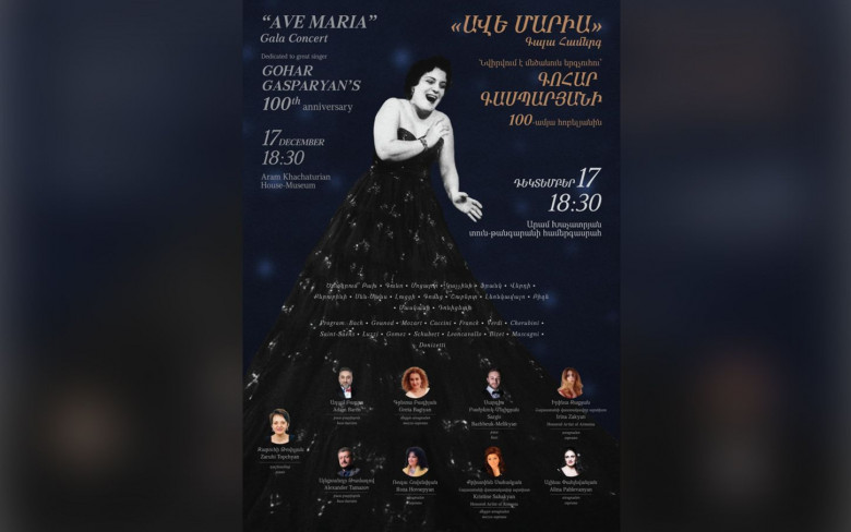 «Ավե Մարիա» Գալա համերգ նվիրված մեծանուն երգչուհու՝ Գոհար Գասպարյանի 100-ամյա հոբելյանին
