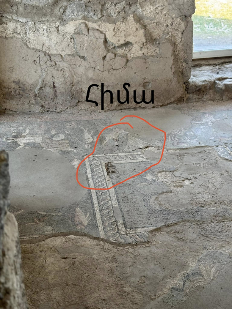 Տարիներ շարունակ տանիքի չվերանորոգելու պատճառով անձրևաջրերը լցվում են ներս ու վնասում խճանկարը, որը հնարավորինս վերականգնվել էր 11 տարի առաջ։