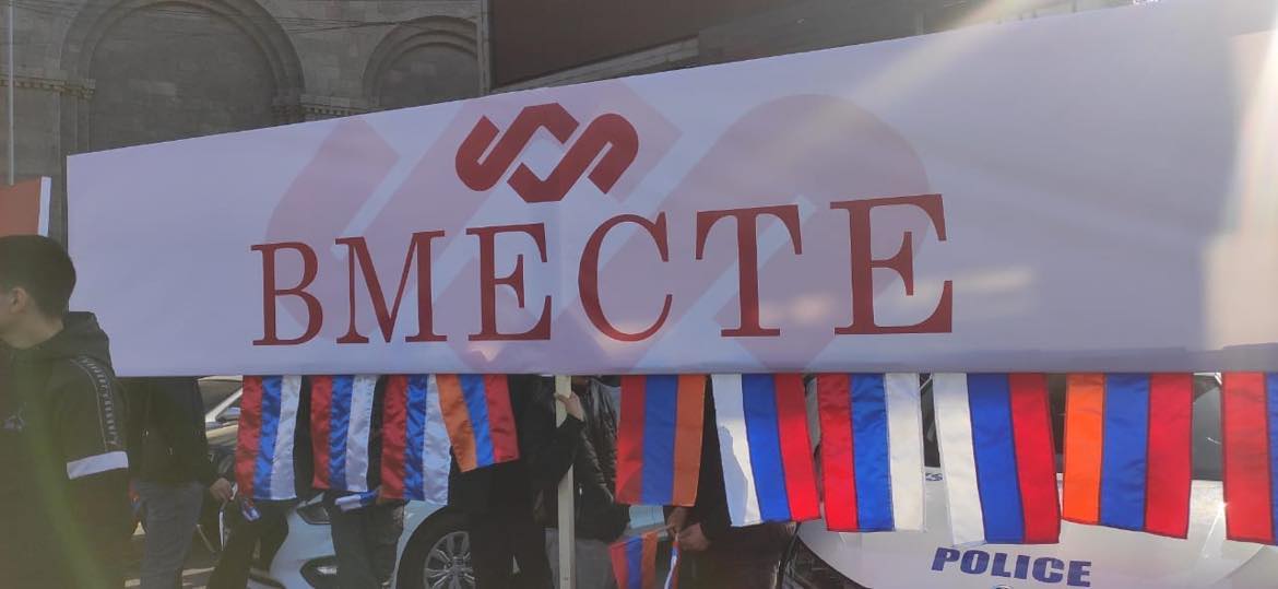 Վերջինիս շարասյանը Հաղթանակի կամրջի վրա դիմավորել էին հազարից ավելի քաղաքացիներ՝ «Միասին» և «Բարի գալուստ» պաստառներով։ Ակցիայի կազմակերպիչը հասարակական-քաղաքական գործիչ, «Իմ երկիր, իմ Հայաստան» հասարակական շարժման ղեկավար, Ռուս-հայկական գործարար խորհրդի վարչության նախագահ Մհեր Ավետիսյանն էր։