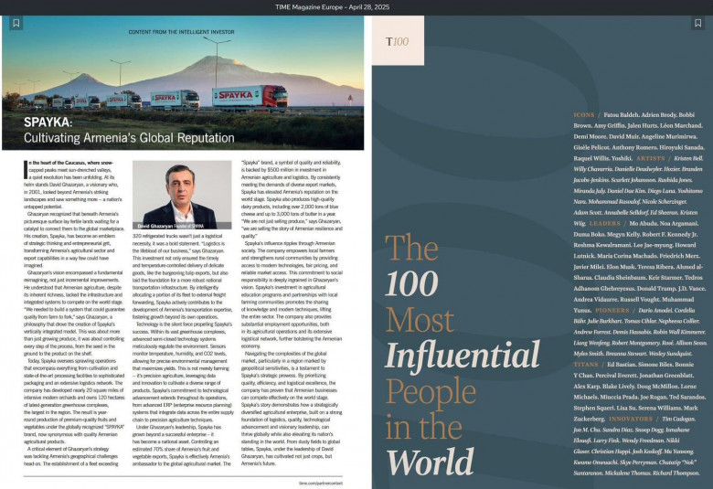 ««Սպայկայի» պատմությունը հզոր օրինակ է, թե ինչպես կարող է ռազմավարական դիվերսիֆիկացված գյուղատնտեսական ձեռնարկությունը՝ հիմնված ուժեղ լոգիստիկայի, որակի, տեխնոլոգիական նորարարության և տեսլական ունեցող առաջնորդության վրա, ոչ միայն հաջողել միջազգային ասպարեզում, այլև բարձրացնել իր երկրի հեղինակությունը»,-գրում է Time Magazine-ը։