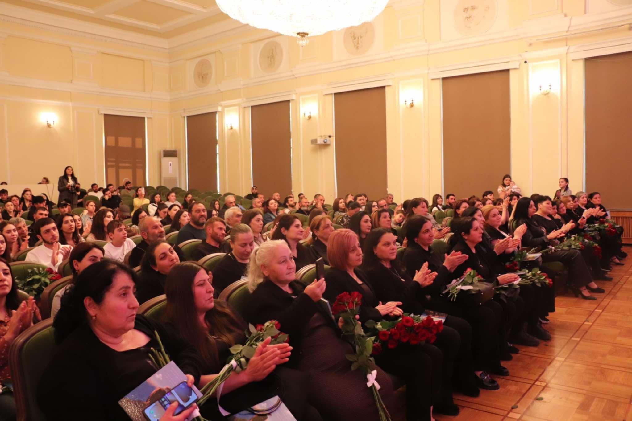 Մենք, միևնույնն է, չենք պատկերացնում մեզ բոլորիս համակած ցավի չափը, գույնը գիտենք, որ սևն է, բայց չափի ու ձևի մասին պատկերացում անգամ չունենք: Մինչև այս պատերազմները, երևի թե, կարող էի ասել, որ իմ շրջապատում քիչ եմ տեսել արցունքները չզսպող տղամարդկանց: Այդ օրը հայրերը ժամանակ առ ժամանակ դուրս էին գալիս դահլիճից, նրանք, որ ստանձնել են ընտանիքում ուժեղն ու ամուրը լինելու առաքելությունը, չէին կարողանում հուզմունքը զսպել: Հետևի շարքում նստած տղամարդկանցից մեկն ասաց՝ այս դահլիճում մի քանի տարի առաջ եմ եղել, ինչ-որ համերգ էր, ո՞վ կմտածեր, որ տարիներ հետո նույն դահլիճում այս առիթով պետք է ներկա գտնվեի: