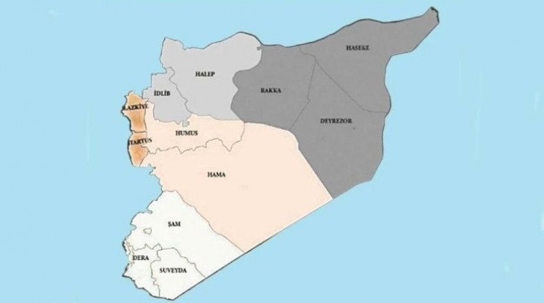 Հալեպի և Իդլիբի շրջանները, որտեղ գերակշռում է թուրքմեն բնակչությունը և գտնվում են Թուրքիայի ռազմաբազաները, կկոչվեն «Հյուսիսային շրջան», Լաթաքիայի և Տարտուսի շրջանները, որոնք տարիներ շարունակ համարվել են արաբ ալավիներին թողնված տարածքներ, կկոչվեն «Ծովեզրյա շրջան»։