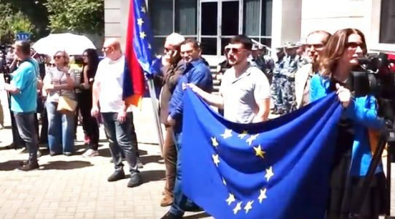 Երեկ մոտ 15 (ի դեպ, այս թիվը հնչեցրել են հենց կազմակերպիչները) «արևմտամետներ» հակառուսական պլակատներով, ՌԴ նախագահ Պուտինի ու ԱԳ նախարար Լավրովի հասցեին վիրավորական պաստառներով ՀՀ ԱԳՆ գլխավոր մուտքի մոտ էին հավաքվել, իսկ այդ ժամանակ ԱԳՆ շենքում տեղի էր ունենում Արարատ Միրզոյանի հանդիպումը ՌԴ ԱԳ նախարարի հետ:
