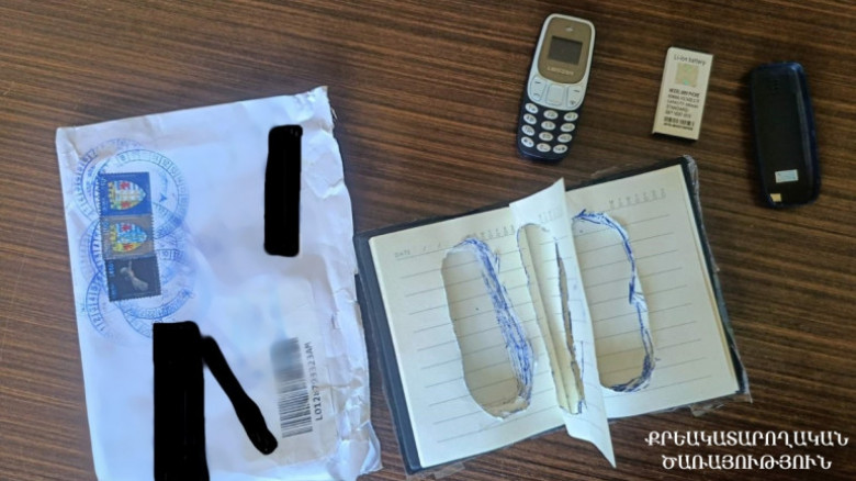 ՀՀ արդարադատության նախարարության «Արթիկ» քրեակատարողական հիմնարկի ծառայողները զննել են դատապարտյալ Ս. Ա.-ի անվամբ փոստով ուղարկված ծանրոցը: Զննության արդյունքում սև, կպչուն ժապավենով փաթեթավորված նոթատետրի օվալաձև կտրված էջերի մեջ պատրաստած թաքստոցից հայտնաբերել են 1 բջջային հեռախոս: Այս մասին հայտնում են Քրեակատարողական ծառայությունից: