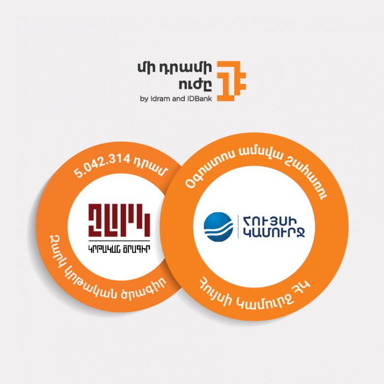 «Մի դրամի ուժի» բարի գործերին մասնակից դառնալու համար բոլոր վճարումները պետք է կատարել Idram&IDBank հավելվածով, IDBanking.am եւ banking.idram.am առցանց հարթակներով, Իդրամի եւ IDBank-ի տերմինալներով, եւ յուրաքանչյուր վճարման դիմաց ընկերությունները մեկ դրամ կուղղեն կարեւոր ծրագրերին։