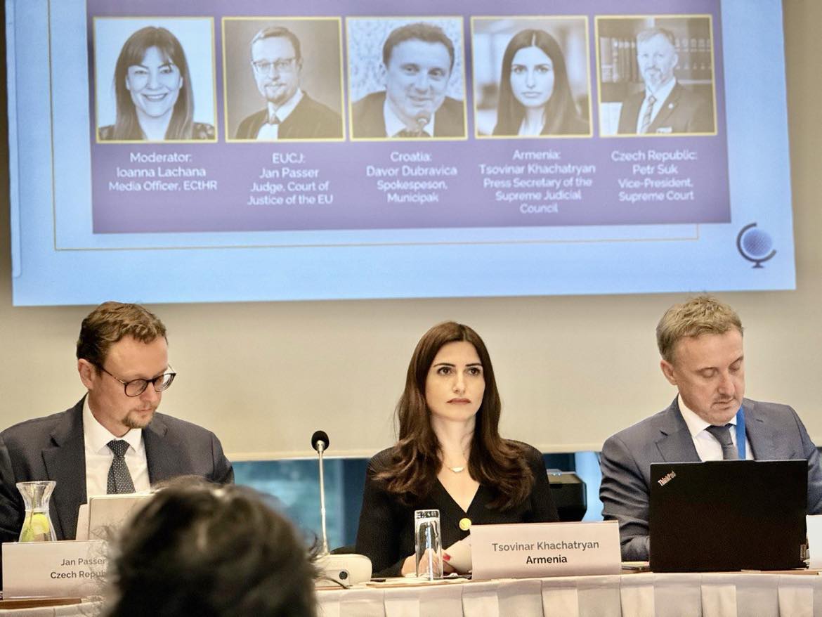 Պանելային քննարկման մեխն էր թափանցիկության և էթիկայի ստանդարտների ու դատական անկախության միջև անհրաժեշտ հավասարակշռության պահպանումը՝ հիմնվելով տարբեր երկրների փորձի ու միջազգային ուղեցույցների վրա։ Ծովինար Խաչատրյանն անդրադարձել է հարցին, թե ինչպես ապահովել ուղերձների հասցեականությունն ու խուսափել հակասություններից։ Յան Պասսերը ներկայացրել է հատկապես միջազգային դատարաններում հանրային վստահություն պահպանելու և քաղաքական մեկնաբանություններից խուսափելու եվրոպական փորձը։ Դավոր Դուբրավիցան խոսել է միջազգային և եվրոպական ստանդարտներից ու հանձնարարականներից՝ հիմնվելով Եվրոպական դատավորների խորհրդատվական խորհրդի (CCJE) կարծիքների, Վենետիկի հանձնաժողովի ու ՄԱԿ-ի և Բանգալորյան սկզբունքների վրա, ինչպես նաև ներկայացրել Խորվաթիայում դատական հաղորդակցության կարգավորումները։ Պետր Սուկն անդրադարձել է դատավոր-խոսնակի մոդելին և Չեխիայում կիրառվող խառը մոդելին, խոսել այն դատավորների պատասխանատվության մասին, ովքեր դատարանի անունից հանդես են գալիս հանրության շրջանում, ընդգծել է, թե ինչպես կարելի է պահպանել չեզոքությունը և դատաիրավական զսպվածությունը՝ միաժամանակ ձևավորելով արդյունավետ հաղորդակցություն, հատկապես այն դեպքում, երբ տարբեր դերակատարներ են ներկայացնում դատական իշխանության տեսակետը։