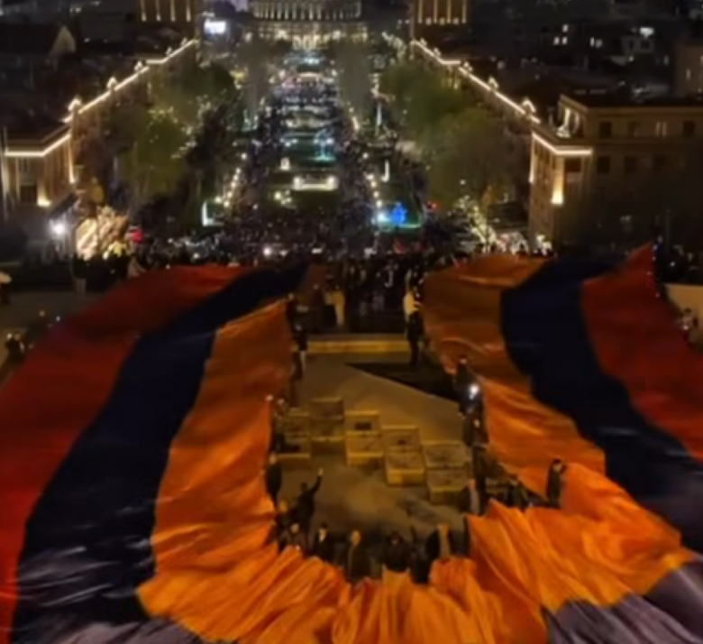 ՔաղաքականՓոփոխության քամին, այս մասին գրել է «Ուժեղ Հայաստան» կուսակցության անդամ Նարեկ Կարապետյանը և տեսանյութ է հրապարակել Կասկադից, որտեղ հանրահավաքից ու քայլերթից հետո կուսակցության անդամները ծածանում են Հայաստանի դրոշը։