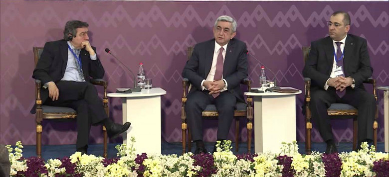 ՔաղաքականԵրևանում անցկացվող «Արարատի ստորոտին» 5-րդ մեդիա համաժողովին ՀՀ նախագահ Սերժ Սարգսյանի արտահայտած մտքերից ուշագրավ էին հատկապես երկուսը: Առաջինը նախագահի պատասխանն էր թուրքական «Today’s Zaman» լրատվական կայքի քաղաքական մեկնաբան Սերվեթ Յանաթմայի հարցին Սարգսյանի՝ հայ-թուրքական արձանագրությունները հետ կանչելու և ավելի վաղ Էրդողանի կողմից հնչած՝ հայերին վիրավորող արտահայտությունների մասին:
