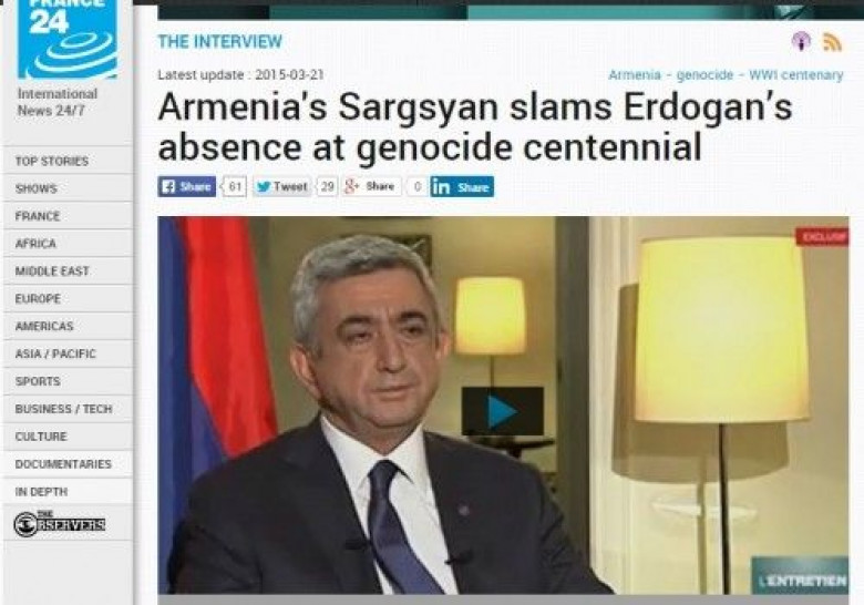 Հայաստանի Նախագահը France 24-ի եթերում քննադատել է թուրքական ժխտողականությունը