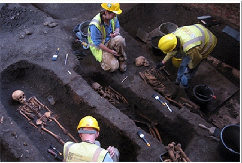 Պեղումների մասին հաղորդվում է Քեմբրիջի համալսարանի մամուլի տեղե կագրում:Կմախքները հայտնաբերել են Հովհան Աստվածաբանի քոլեջի տարածքում՝ աստվածաբանության ֆակուլտետի շենքի նորոգման ժամանակ: