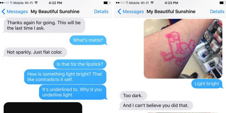When presented with the near impossible task of buying makeup for his girlfriend at the store, this guy on Imgur refused to back down from the challenge. Having no idea what "matte" meant, or how a lipstick could be both "light bright" and matte, he went forth and braved the makeup aisle nonetheless. And because he wanted to share his journey with all of us, the entire exchange between he and his girlfriend, while he was on his makeup quest, now lives on Imgur.